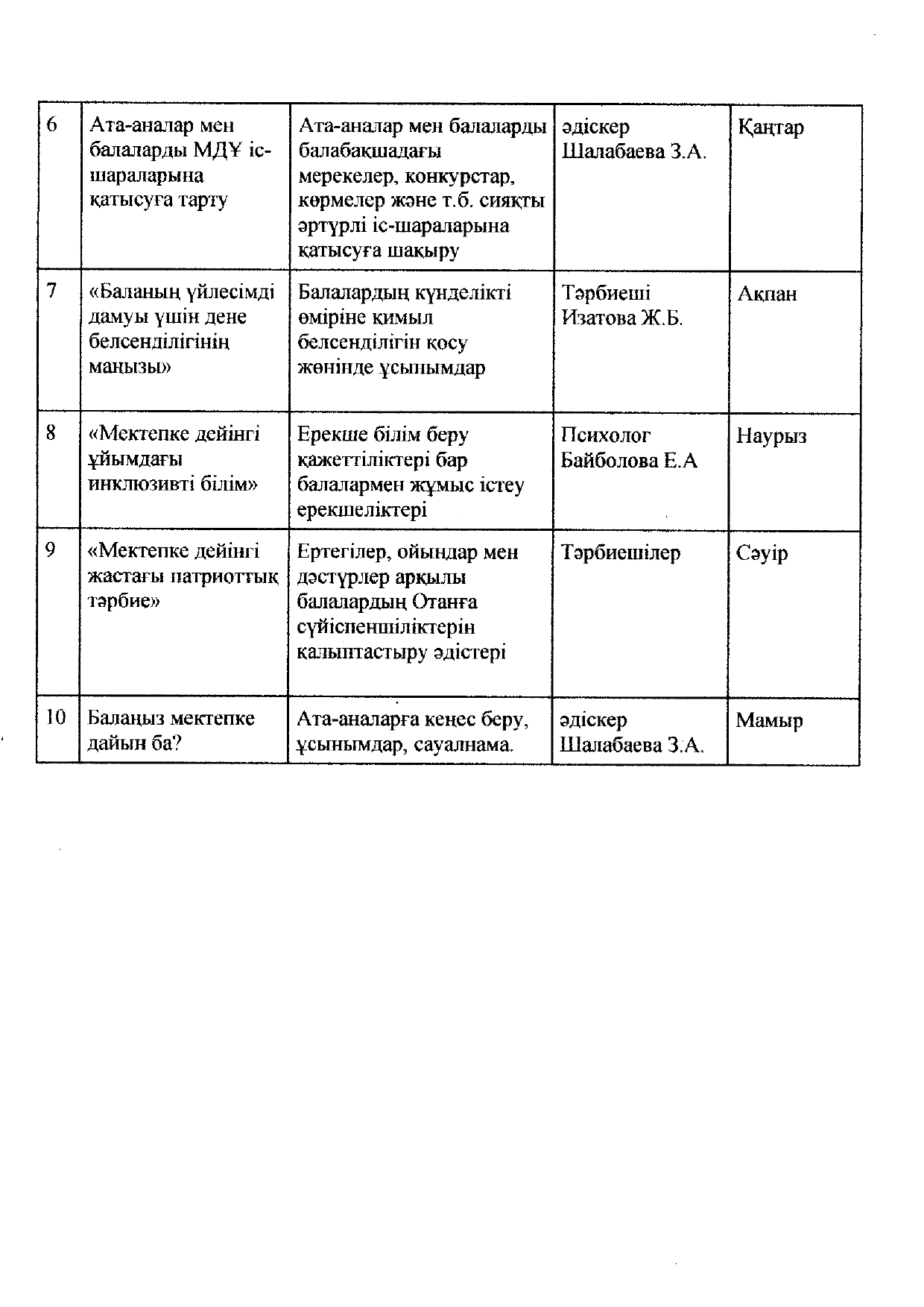 Ата аналарға анралған кеңес беру пунктінің жоспары